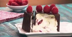 - Versez le lait dans une casserole et faites-y fondre le chocolat blanc. Ajoutez les feuilles de gélatine et remuez bien jusqu'à ce qu'elles aient complètement fondu. Versez ensuite dans un saladier et, une fois que le tout a refroidi, incorporez la crème fouettée puis les framboises.
