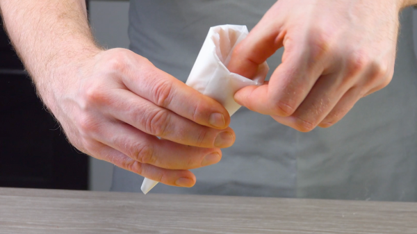 • Enveloppez un cornet de glace de papier sulfurisé et graissez la surface.