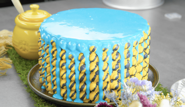 Gâteau zébré avec glaçage bleu