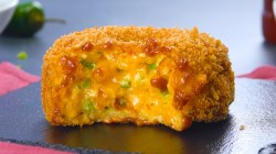 - Mettez les pâtes, le lait, le beurre et le cheddar dans une casserole et faites cuire le tout pendant environ 10 minutes en remuant de temps en temps. Placez ensuite le Mac and Cheese ainsi obtenu au réfrigérateur pour qu'il refroidisse. Incorporez ensuite les jalapeños et l'œuf.