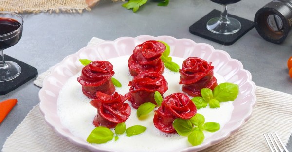 1.7 Plongez les roses terminées dans de l'eau salée frémissante et faites-les cuire pendant 10 à 15 minutes. Ajoutez un morceau de betterave rouge dans l'eau pour obtenir une couleur encore plus intense.
