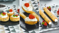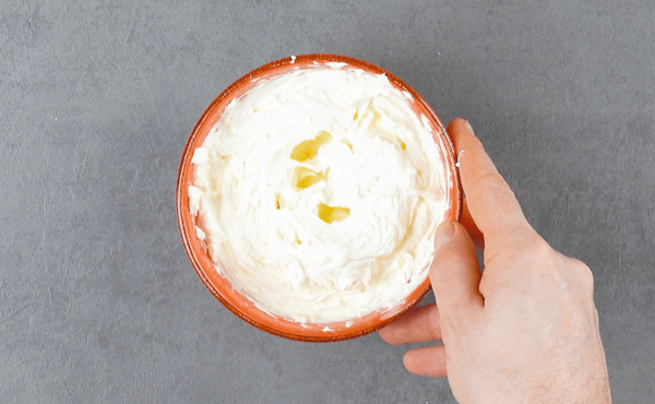 - Pour la crème, mélangez le fromage frais, la pulpe de la gousse de vanille, le sucre glace et le jus d'un demi-citron dans un bol. Fouettez tout ensemble jusqu'à obtenir une consistance crémeuse. Pour les roulés, versez la crème dans une poche à douille, mais pas pour les deux autres recettes.