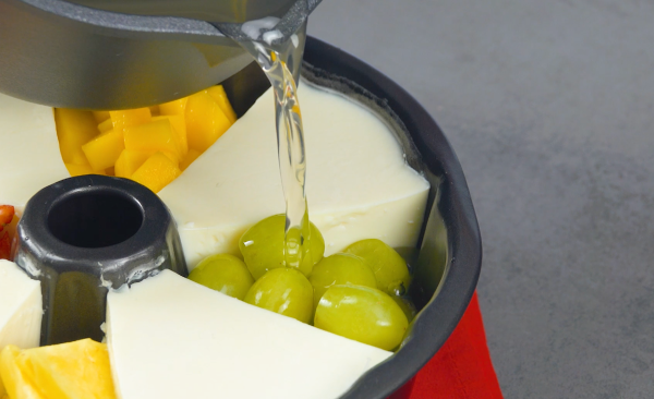 - Versez la gelée de fruits transparente sur les fruits et mettez le tout au frais pendant encore 2 heures (de préférence toute la nuit).