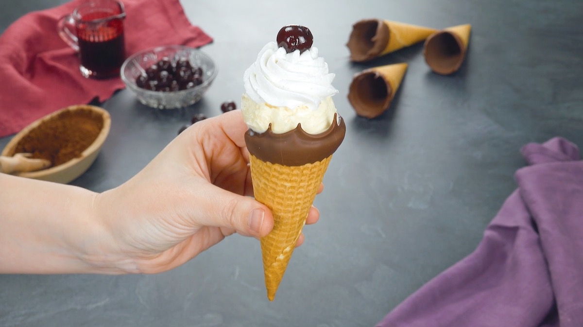 Vous trouverez ici les desserts avec des cornets de glace de la vidéo bonus.