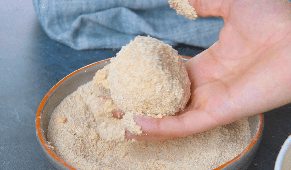 2.3 Fouettez ensemble les œufs, le lait et la farine pour former une pâte. Roulez les boules dedans puis enrobez-les de chapelure.