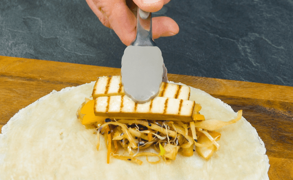 - Les deux autres variétés sont remplies de poivron rouge et de poulet d'une part, et de poivron jaune et de tofu d'autre part, en plus des légumes asiatiques. Roulez ces deux nems exactement comme au point 5.