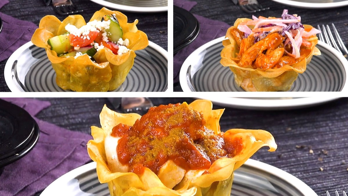 S’il y a bien quelque chose qui a sa place dans toutes les cuisines, c’est le moule à muffins. Aucun autre objet ne peut être utilisé de façon aussi variée dans la cuisine. Qu’il s’agisse de délicieux desserts ou de créations salées, tout est possible avec un moule à muffins. Cette idée de recette vous montre 3 façons différentes d’imaginer de copieux paniers de pommes de terre avec une garniture variée.