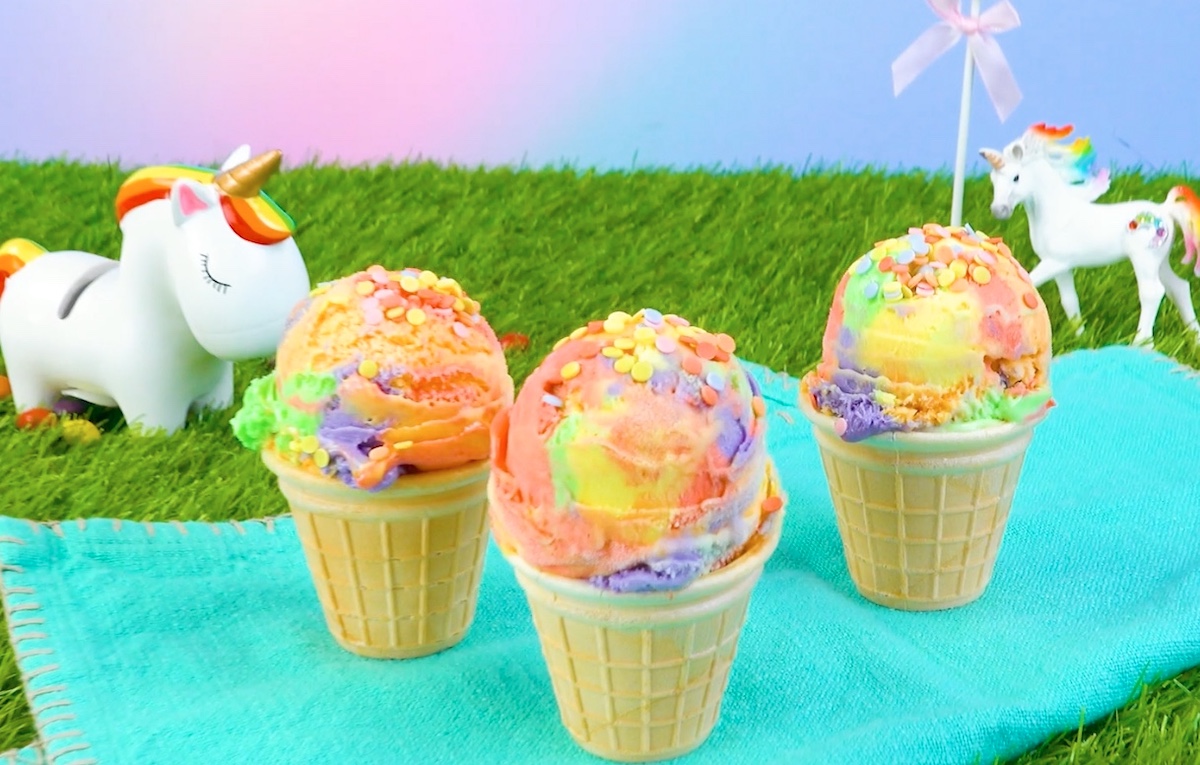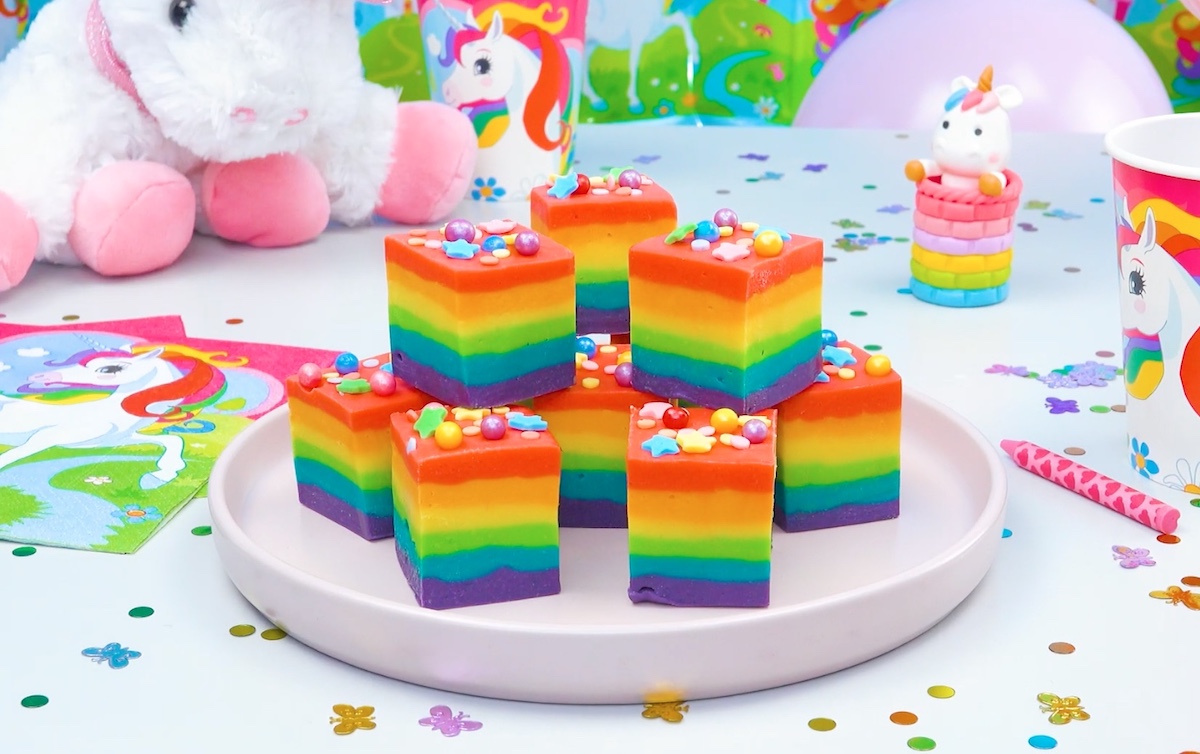 Gâteau roulé, fudge ou glace – avec ces 3 friandises colorées, vous pouvez désormais profiter d’un arc-en-ciel sans vous soucier de la météo, et pas seulement avec les yeux ! Bon Ap’ !
