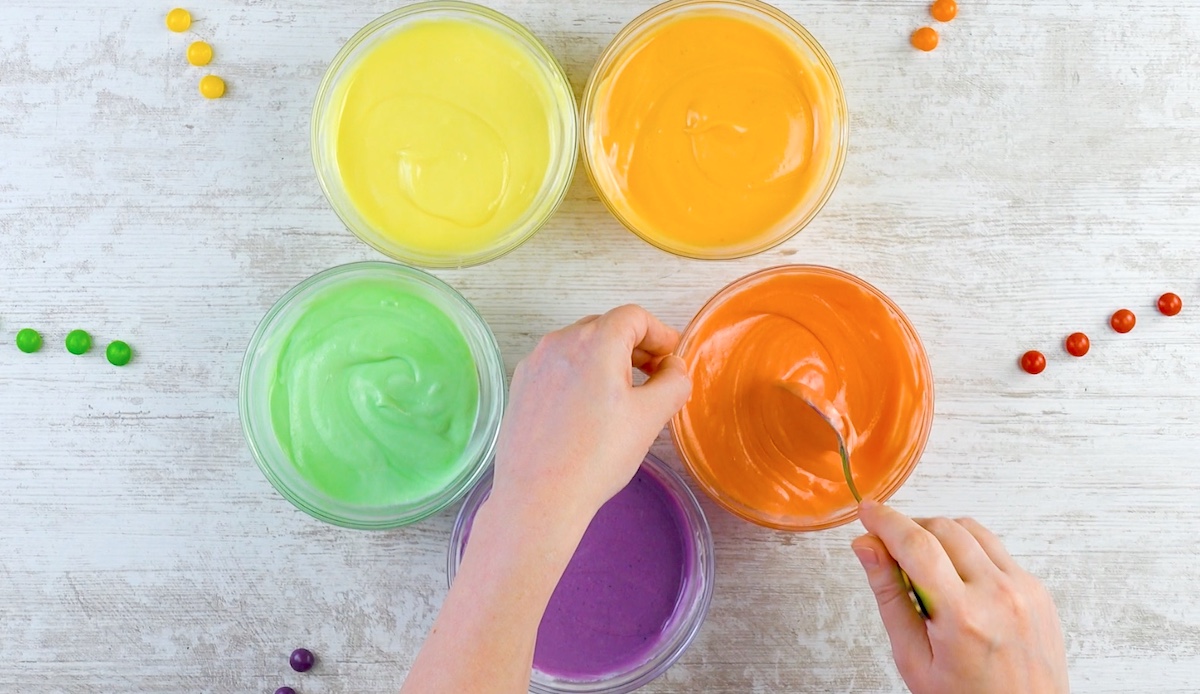 - Colorants alimentaires (violet, bleu, vert, jaune, orange, rouge)