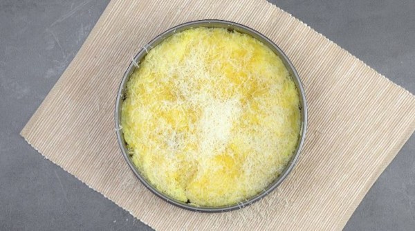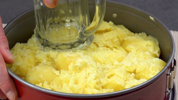 - Faites bouillir les pommes de terre dans de l'eau salée puis épluchez-les. Graissez un moule à charnière avec du beurre puis mettez les pommes de terre dans le moule et écrasez-les avec un verre.