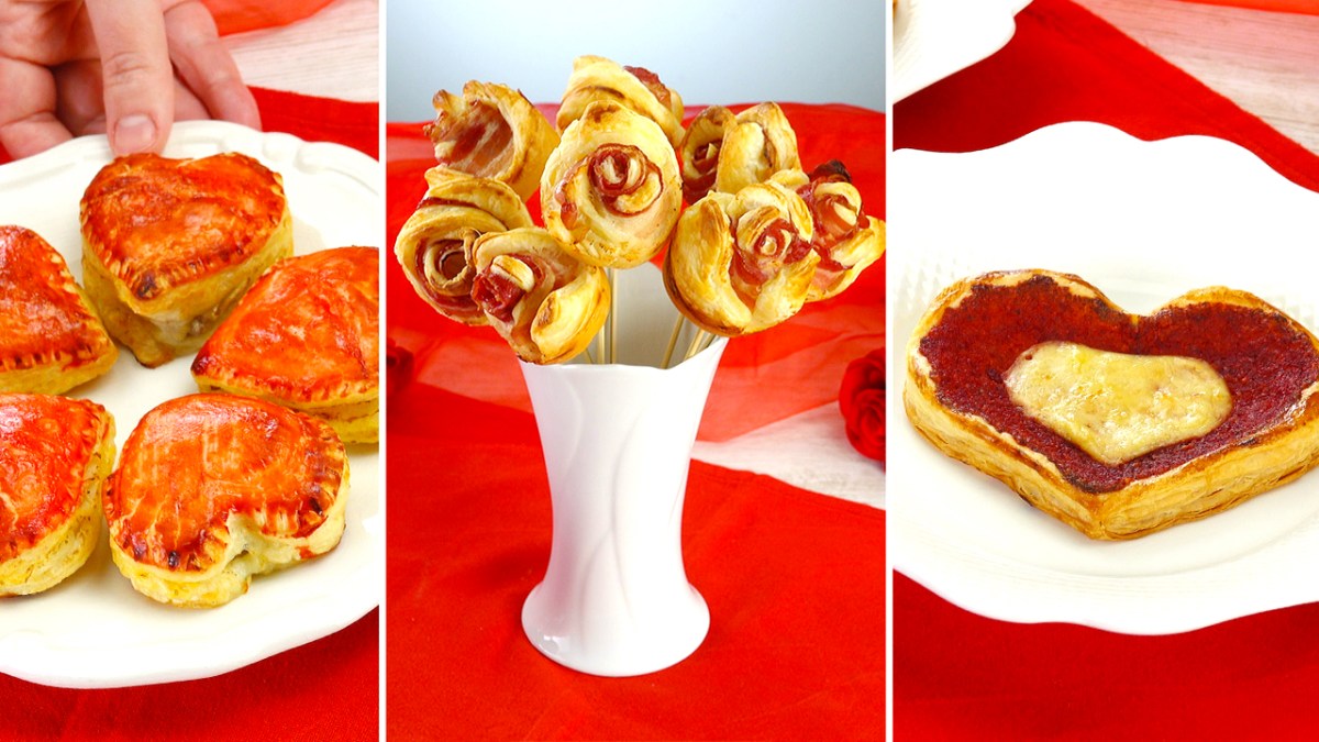 Le jour le plus romantique de l’année approche et comme cette année, c’est particulier, le repas se fera forcément à la maison. Alors pour marquer le coup sans passer toute la journée en cuisine, voici trois petites idées délicieuses à réaliser avec de la pâte feuilletée pour montrer tout votre amour à votre moitié. C’est facile, rapide et très romantique ! La Saint-Valentin peut commencer.