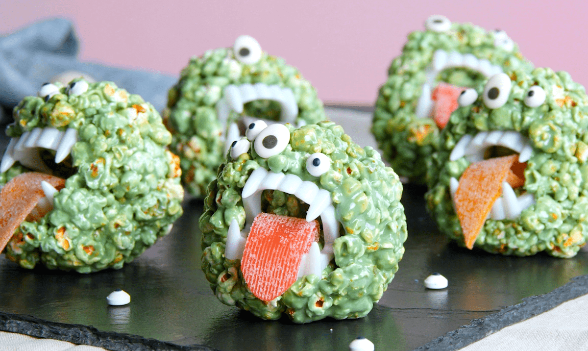 1.3 Décorez les boules de pop-corn avec des dents de vampire que vous enfoncez dans le creux, avec des yeux en sucre ainsi que des bonbons.