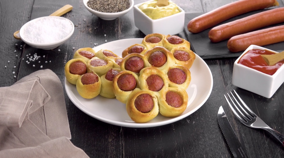 Les hot-dogs sont très appréciés dans le monde entier. Mais au lieu d’envelopper les saucisses dans un pain classique, nous avons créé quatre recettes qui combinent saucisses et pâte à pizza, regardez :