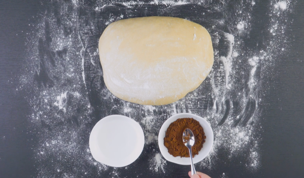 - Tamisez de la farine sur le pâton et répartissez-la soigneusement avec la main. Trempez d'abord la cuillère à café dans l'eau, puis dans le cacao de manière à ce qu'il adhère au dos de la cuillère. Tamponnez ensuite des empreintes de cacao sur la miche de pain à l'aide de la cuillère. Répétez l'opération jusqu'à ce que toute la miche de pain soit recouverte d'un motif en épi. Avec l'incisette à pain, dessinez encore une tige au milieu de la miche et dans celle des feuilles de cacao. Placez un récipient rempli d'eau chaude ou bouillante dans le four préchauffé à 250 °C (chaleur tournante) et glissez le pain dans le four à mi-hauteur. Après environ 15-20 minutes, retirez le récipient d'eau du four et baissez la température à 180 °C. Faites cuire le pain pendant 20 minutes supplémentaires.