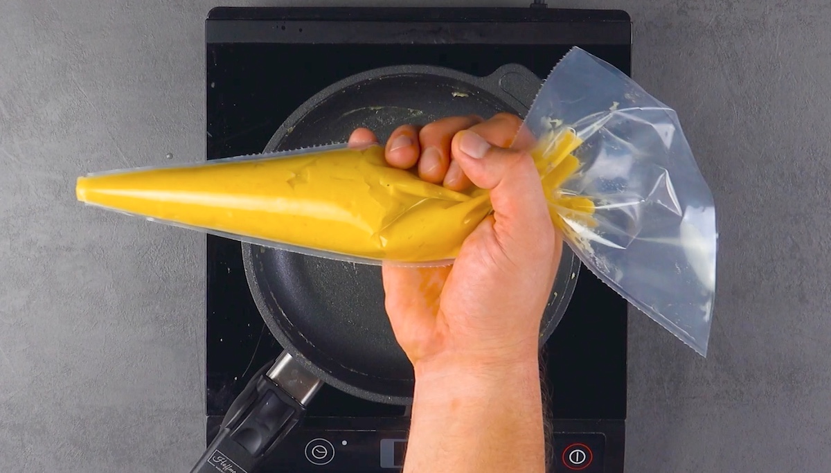 4.1 Pour la crème au citron, mélangez d’abord tous les ingrédients sauf le beurre dans une casserole. Chauffez-les ensuite lentement jusqu’à ce que le mélange épaississe un peu, puis ajoutez le beurre. Laissez refroidir brièvement la crème au citron avant de la verser dans une poche à douille.