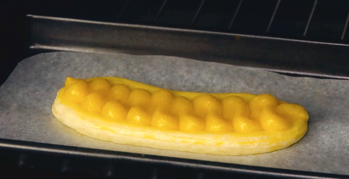 4.2 Découpez la pâte feuilletée en huit morceaux ovales. Battez les jaunes d’œufs et badigeonnez les morceaux avec cette préparation. Recouvrez les pâtons de crème au citron, fais-les cuire pendant 15 minutes à 180 °C à chaleur tournante et laissez-les ensuite refroidir.
