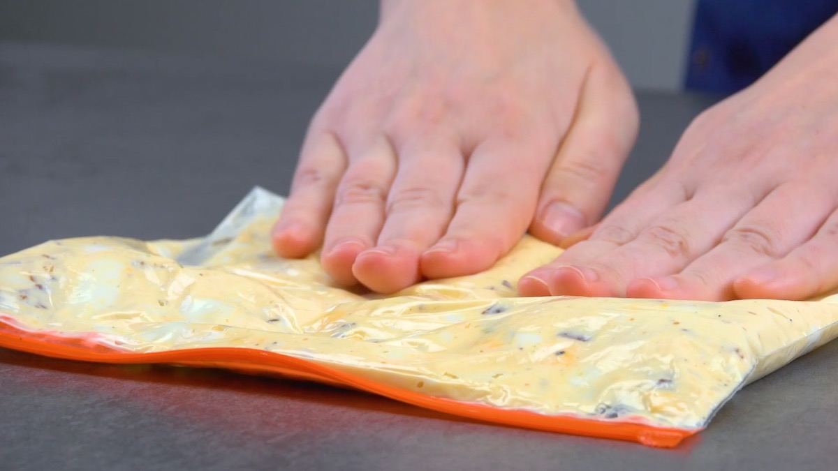 1.2 Coupez un coin du sachet refermable pour pouvoir verser votre mixture plus tard.