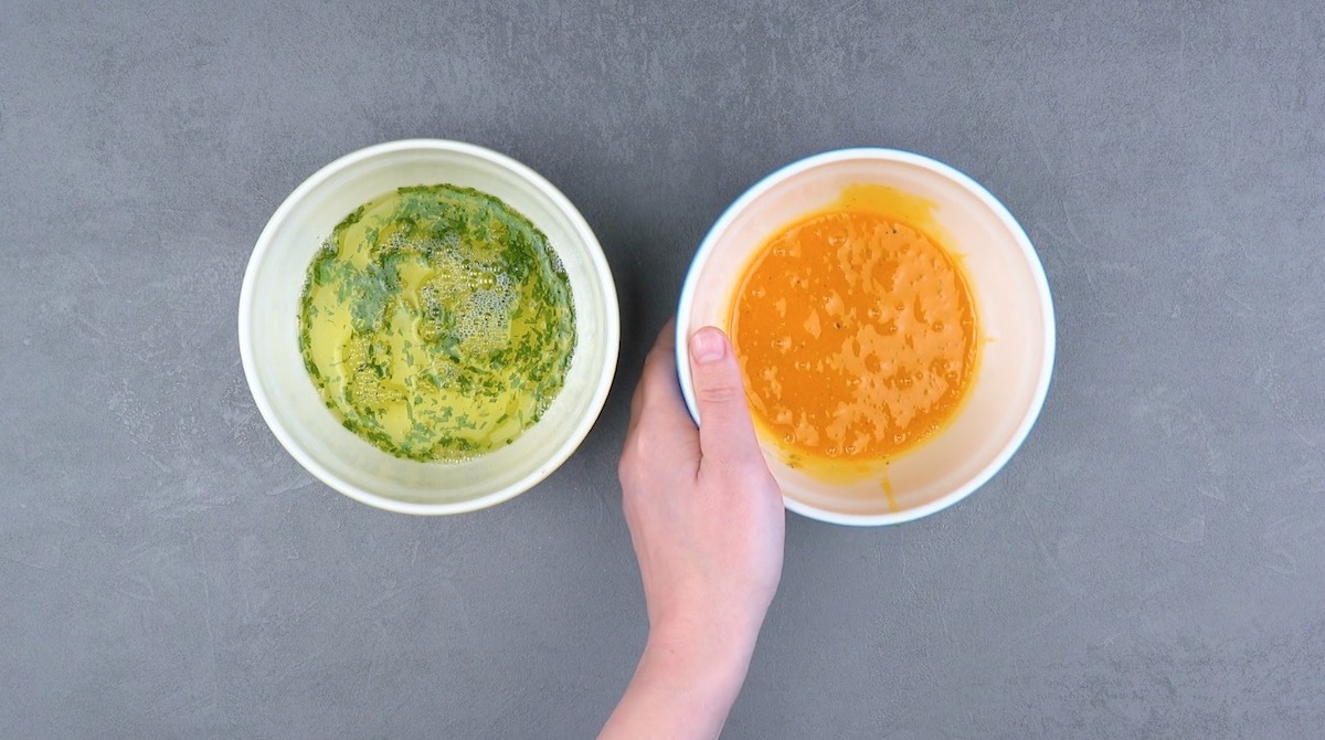 2.1 Séparez les œufs. Assaisonnez les jaunes d’œufs avec du sel et du poivre et ajoutez du persil aux blancs d’œufs.