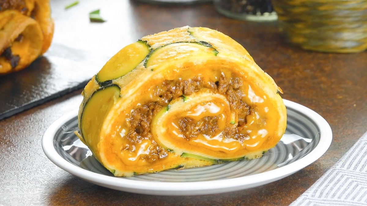 Un roulé qui fait office de plat principal ? Avec cette recette, ce souhait devient réalité ! Nous allons vous montrer comment les courgettes coupées en tranches, la viande hachée, le cheddar et les œufs se transforment en un savoureux roulé. Un pur régal !
