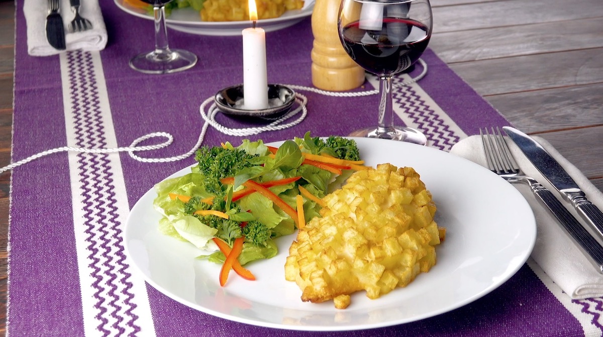 Le cordon bleu est un plat préparé avec une escalope (de veau, de poulet ou de dinde) enroulée autour de jambon et de fromage puis panée. Bon Ap’ vous propose aujourd’hui une variante de ce plat avec des pommes de terre pour une apparence marquante qui ne manquera pas de faire sensation sur votre table.