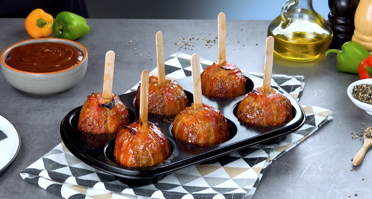 Nous vous proposons un petit apéritif protéiné pour faire le plein d’énergie ! Des boules de viande sur bâtonnet au cœur fondant de fromage et de poivron. Un mélange étonnant qui détonne !