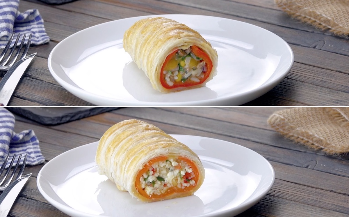 Aujourd’hui, Bon Ap’ vous propose deux variantes de poivrons farcis dans leur manteau feuilleté. C’est la farce qui fait toute la différence.