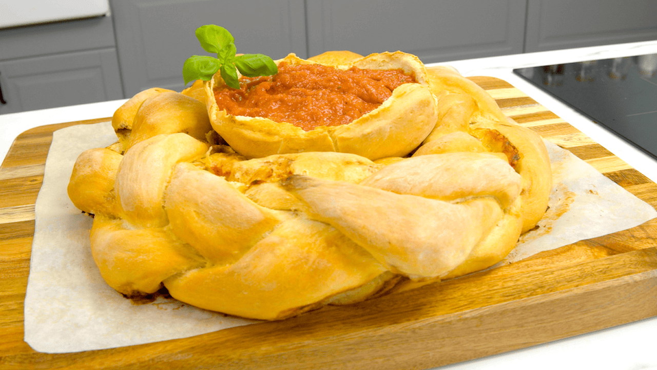 Cette tresse de pizza a non seulement un goût irrésistible, mais elle fait également du dîner une expérience inoubliable. Invitez vos amis les plus chers et servez-leur cette pizza tressée super cool avec une délicieuse sauce tomate. La recette parfaite pour une soirée entre amis. Vous allez l’adorer !