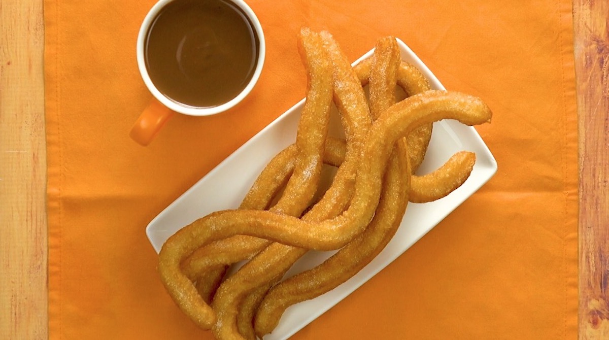 1.2) Faites chauffer l’huile dans une casserole et plongez les churros individuellement dans l’huile chaude en utilisant la poche à douille. Faites-les frire jusqu’à ce qu’ils soient dorés puis mettez-les sur une assiette avec du sucre. Si vous voulez, ajoutez un peu de cannelle.