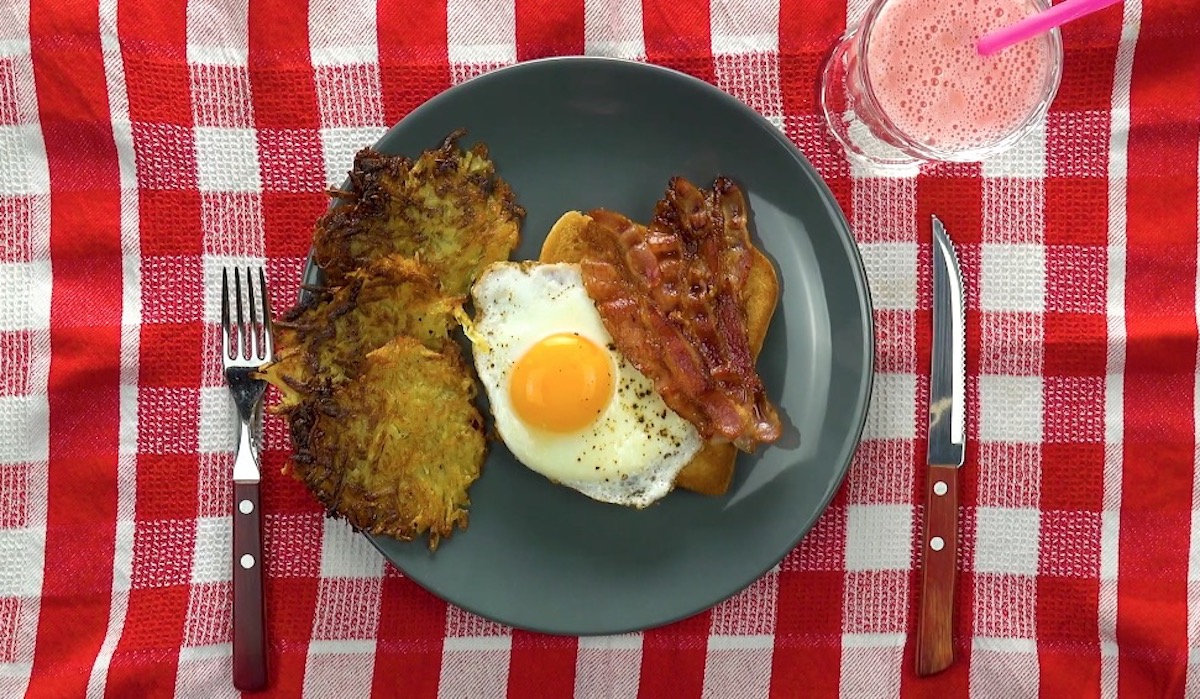 6) États-Unis : Œufs, bacon, pain de mie hash browns et smoothie