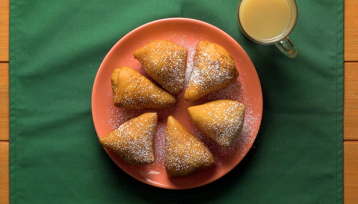 5.3) Dans une poêle ou une casserole, faites chauffer l’huile et faites revenir les Mandazi jusqu’à ce qu’ils soient dorés. Saupoudrez de sucre glace et servez avec une tasse de thé chai.