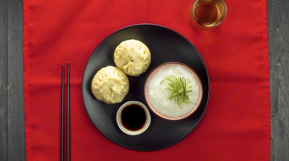 3) Chine: Baozi avec soupe au riz et thé au jasmin