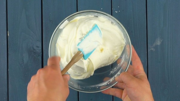 - Battez le mascarpone avec le sucre glace jusqu'à obtenir une masse lisse. Ajoutez l'arôme vanille. Fouettez la crème et incorporez-la délicatement au mélange de mascarpone. Réfrigérez pendant 1 heure.
