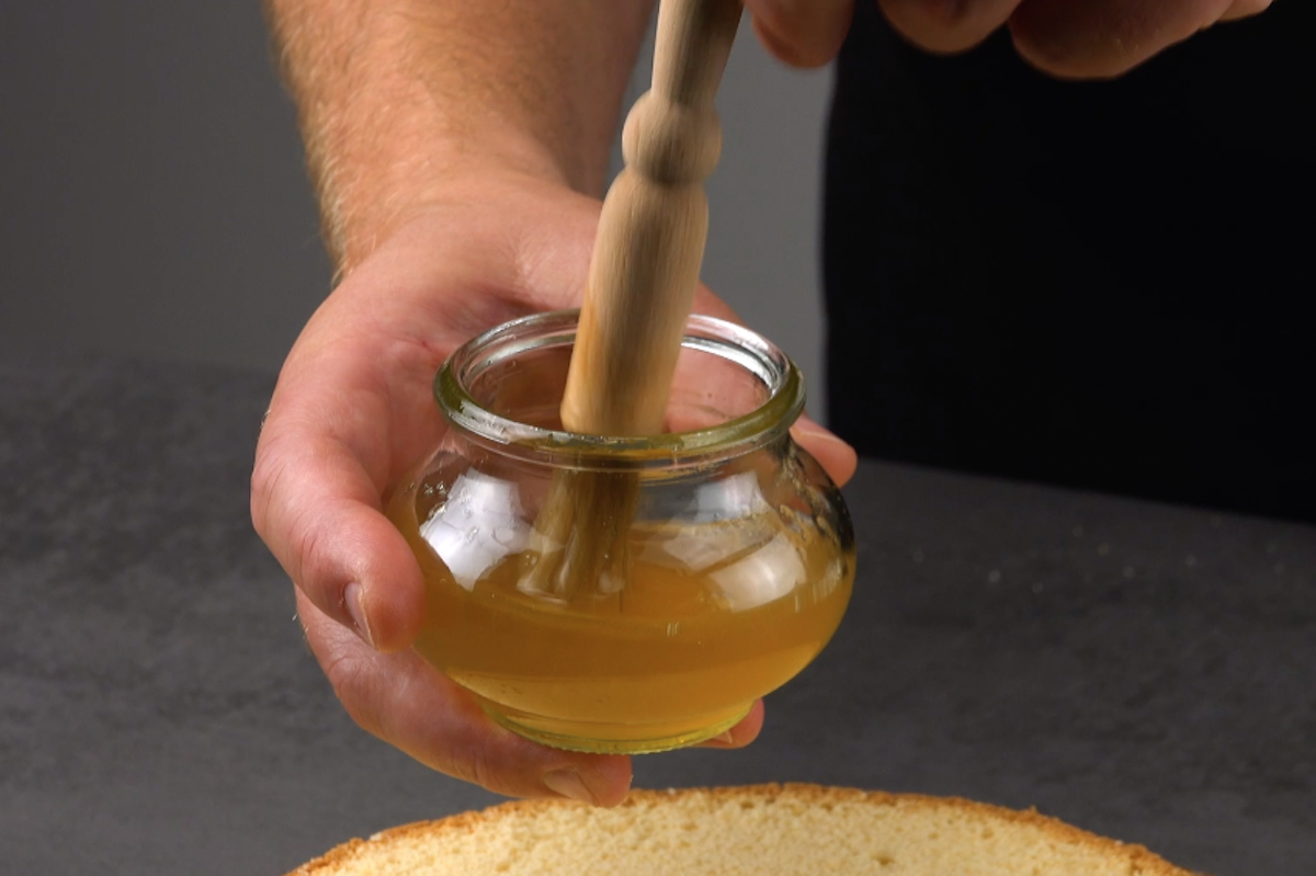 Mélangez le miel avec de l’eau chaude et étalez-le sur la base du gâteau. De cette façon, le fond du gâteau devient ou reste moelleux.