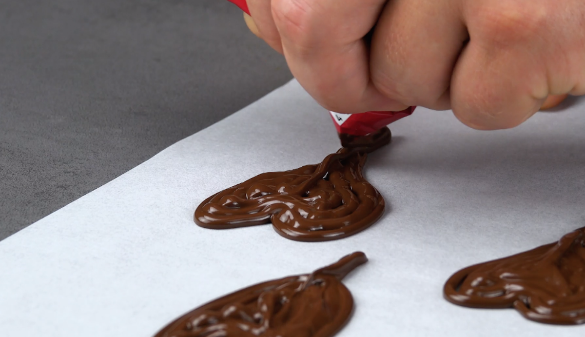 Faites fondre la tablette de chocolat en plaçant le paquet fermé dans de l’eau chaude. Une fois que le contenu a fondu, vous pouvez couper un coin de l’emballage et servir le chocolat fondu à votre guise, par exemple sur du papier sulfurisé, puis le laisser durcir.