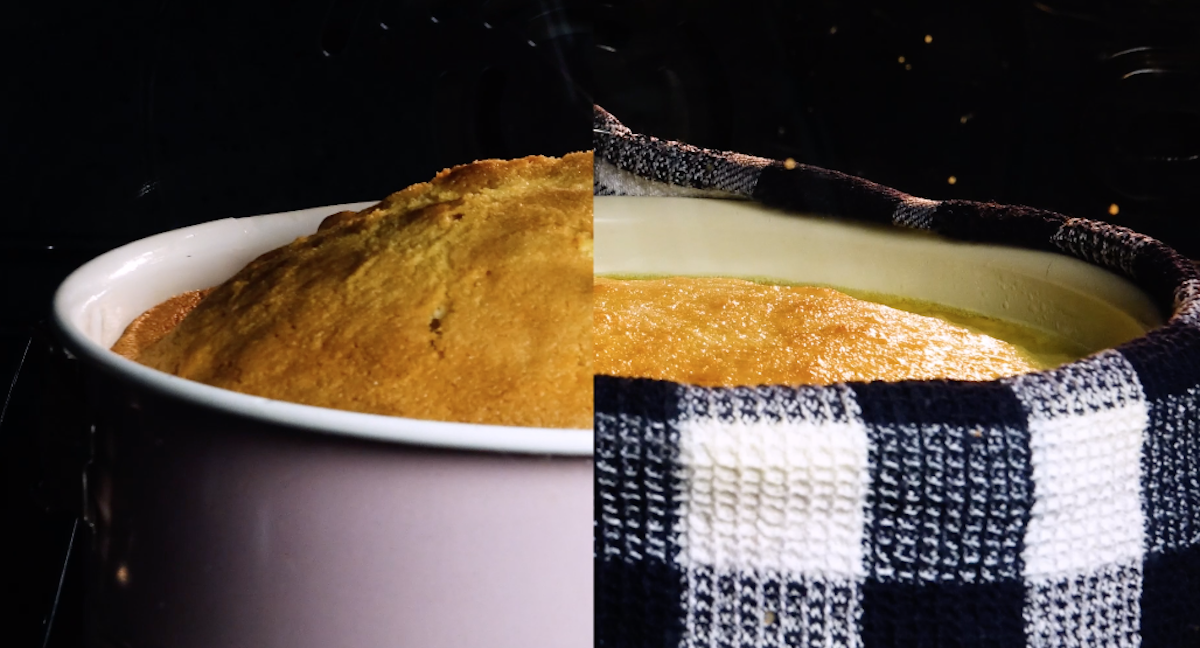 Pour que le gâteau ne “monte” pas pendant la cuisson, il y a une astuce très simple. Imbibez un torchon d’eau et enroulez-le autour du moule. Fixez-le avec des épingles à nourrice pour éviter qu’il ne glisse vers le bas. Enfournez ensuite le moule à gâteau comme d’habitude.