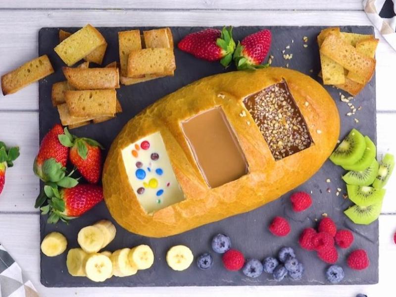 Fondue aux 3 chocolats dans son pain