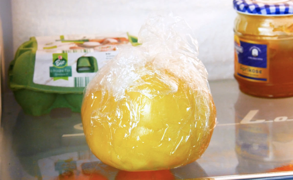 Mélangez le sucre, le sucre vanillé, le beurre et les œufs pour obtenir une crème, puis tamisez de la farine, de la levure et du sel. Travaillez le tout pour obtenir une pâte lisse et mettez au frais pendant au moins 30 minutes.