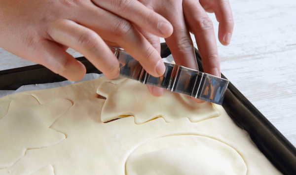 - Utilisez les emporte-pièces pour découper 6 formes différentes, chacune avec un « cœur » de mélange à base de crème à la vanille.