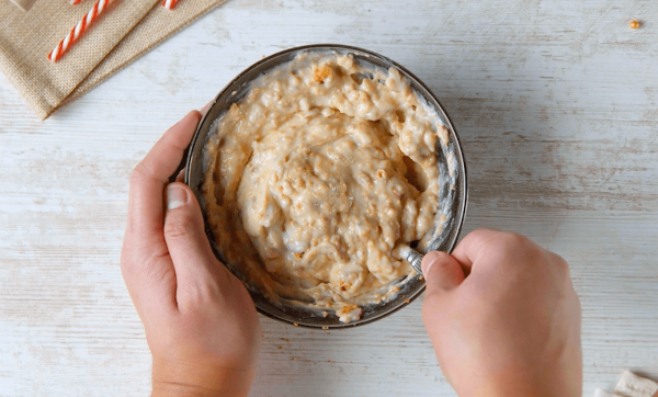 - Cassez le pain d'épice et mélangez les morceaux avec la crème à la vanille.