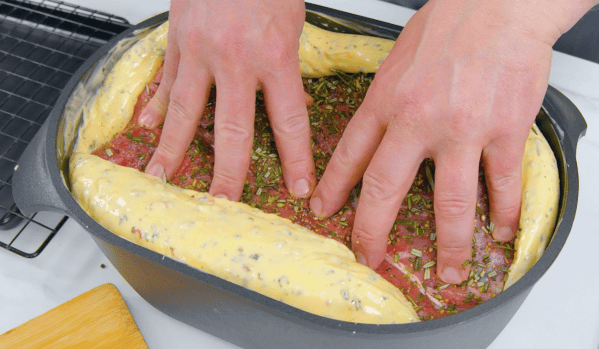 - Plongez la viande dans le beurre aux herbes de manière à ce qu'elle soit entièrement enrobée de beurre. Déposez-la ensuite sur une grille et placez celle-ci avec la viande pendant 30 minutes au réfrigérateur (ou environ 1 heure à température ambiante) pour que la couche de beurre se solidifie.