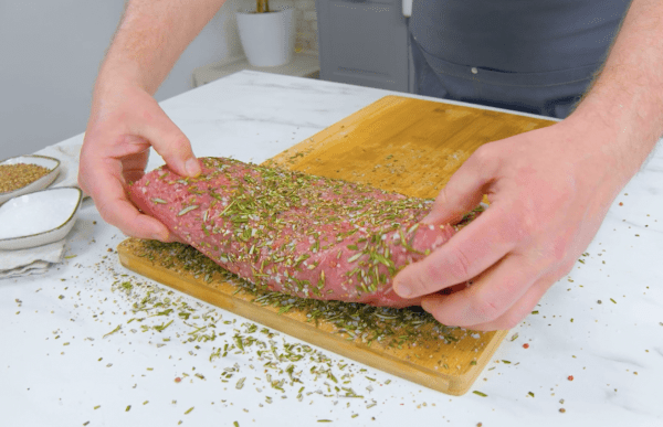 - Enlevez la graisse et les tendons du bœuf, puis faites-le mariner dans du romarin, du sel et du poivre. Congelez la viande pendant 5 minutes.