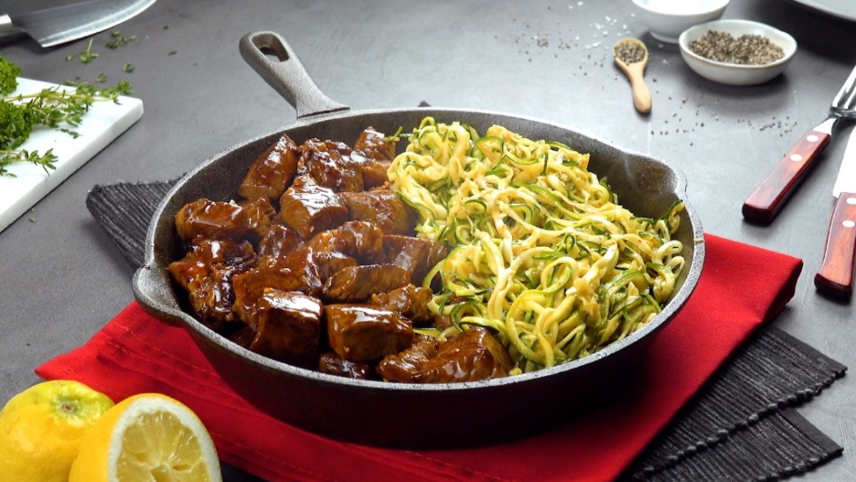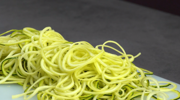 Aujourd’hui, on vous fait goûter les zoodles (contraction en anglais de zucchini : courgette et noodle : nouilles), une alternative fraîche aux nouilles de blé. Elles sont l’accompagnement parfait pour vos viandes et poissons. On vous montre comment faire :