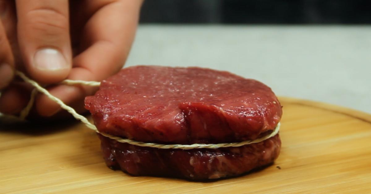 • Enroulez de la ficelle de cuisine autour des deux filets pour que la viande reste tendre et juteuse à l’intérieur, même après la cuisson.