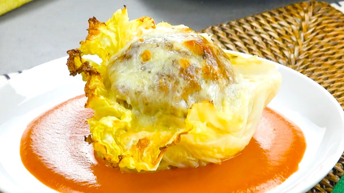 On adore le chou de Milan ! Cette tête de chou verte est un produit sain qui peut être utilisé pour préparer des recettes merveilleusement créatives. Aujourd’hui, nous allons vous montrer comment faire des boulettes de viande fourrées au fromage dans un moule à muffins. Et parce qu’il n’y en a jamais assez pour nous, nous allons recouvrir le tout de fromage. Servez ensuite avec une sauce tomate crémeuse et régalez-vous ! C’est parti :
