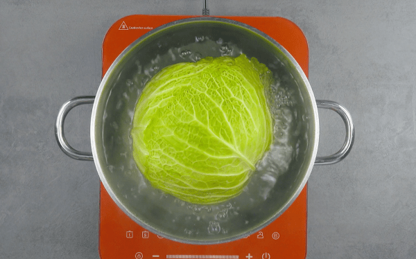 - Coupez la tige du chou de Milan et blanchissez-le jusqu'à ce que les feuilles se détachent lentement de la tige. Rincez ensuite le chou de Milan dans de l'eau glacée afin qu'il conserve sa couleur verte et ne continue pas à cuire. Tamponnez les feuilles de chou avec de l'essuie-tout.