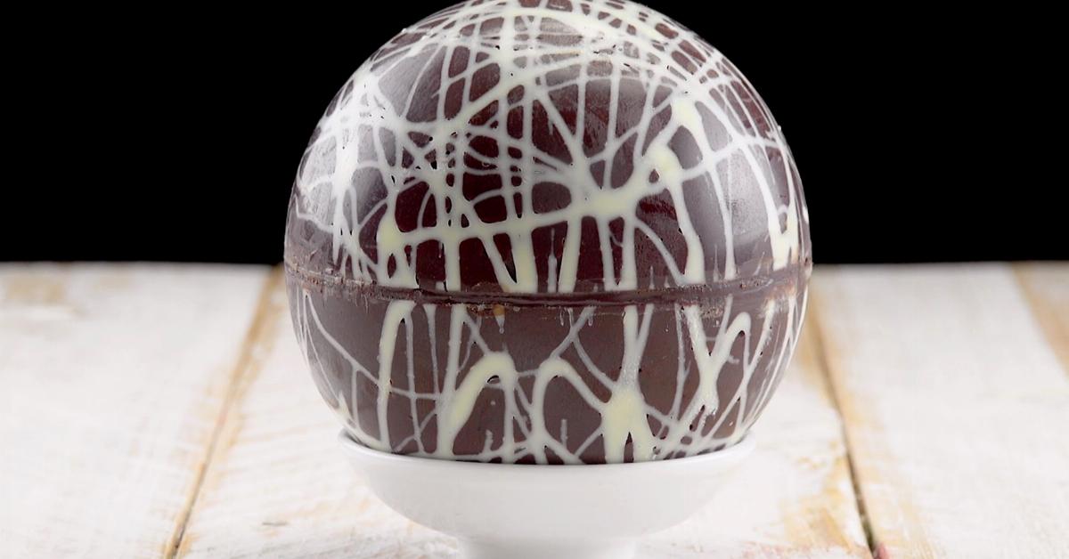 - Faites fondre le chocolat blanc et le chocolat noir au bain-marie. À l'aide d'une cuillère, déposez quelques éclaboussures de chocolat blanc dans les deux moules. Versez ensuite le chocolat noir fondu dans les deux moules et retournez-les jusqu'à ce que les moules soient entièrement recouverts de chocolat noir. Maintenant, retournez les moules et versez l'excédent de chocolat noir dans un saladier.