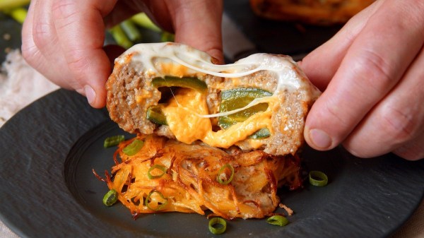Jusqu’à présent, les pommes de terre et la viande hachée vous ennuyaient ? Il n’en est plus question maintenant ! Ces boulettes de viande farcies de jalapeños et de cheddar sur des nids de pommes de terre font vraiment la différence. Bon Ap’ !