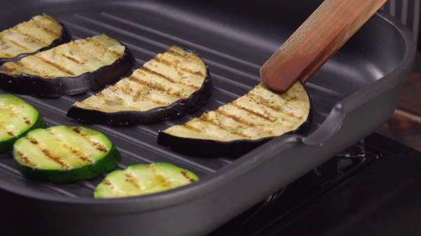 - Faites revenir les courgettes et les tranches d'aubergines des deux côtés.