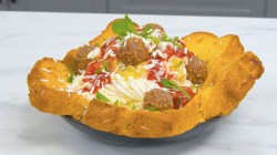 - Répartissez encore quelques Ferrero Rocher dans le bowl, ajoutez du coulis de fraises et décorez le tout avec du chocolat blanc râpé et de la menthe fraîche.