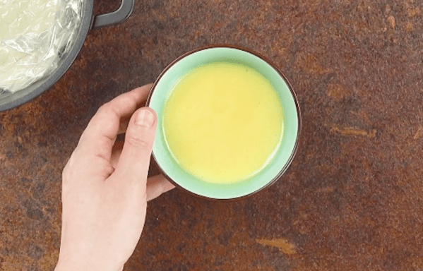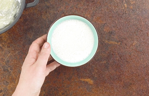 - Mélangez le sel, l’œuf, le lait en poudre et le sucre dans un bol. Réservez une cuillère à soupe de sucre pour plus tard.